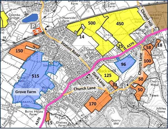 The draft LP discussed above includes 515 houses on Grove Farm. Backwell opposes the principle of this inclusion.