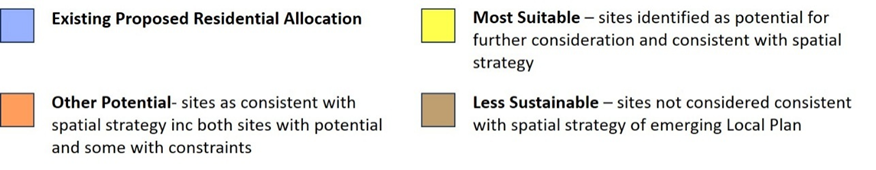 - all the blue and yellow sites shown in the map above, with slightly different housing numbers. The sites shown below in red are all included